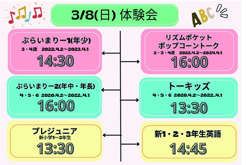 2026年春新クラス開講!春のおんがく・えいご体験会るんるん (音符)