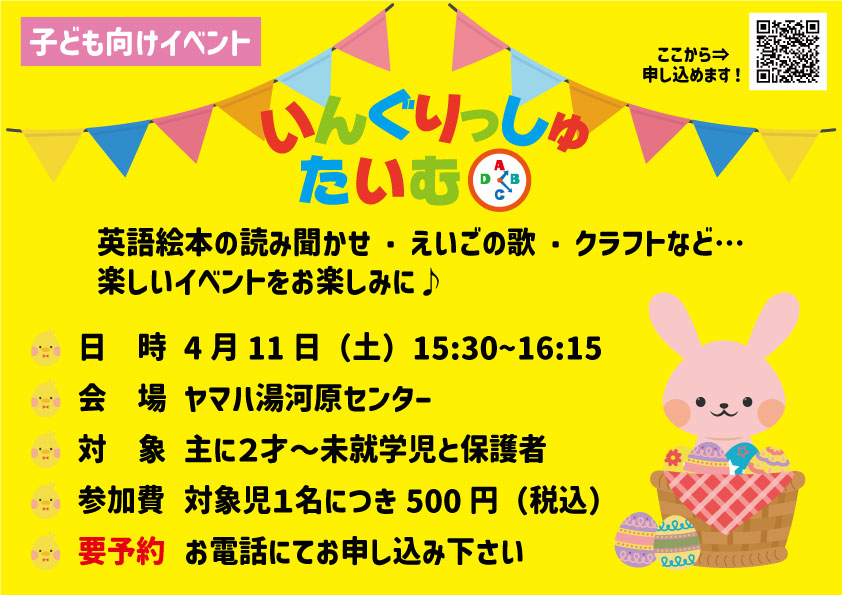 ヤマハ英語教室イベント『いんぐりっしゅたいむ』開催します