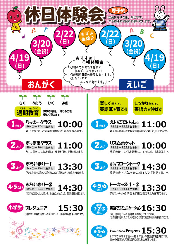 《おんがく》対象年齢はチラシ画像をご確認ください