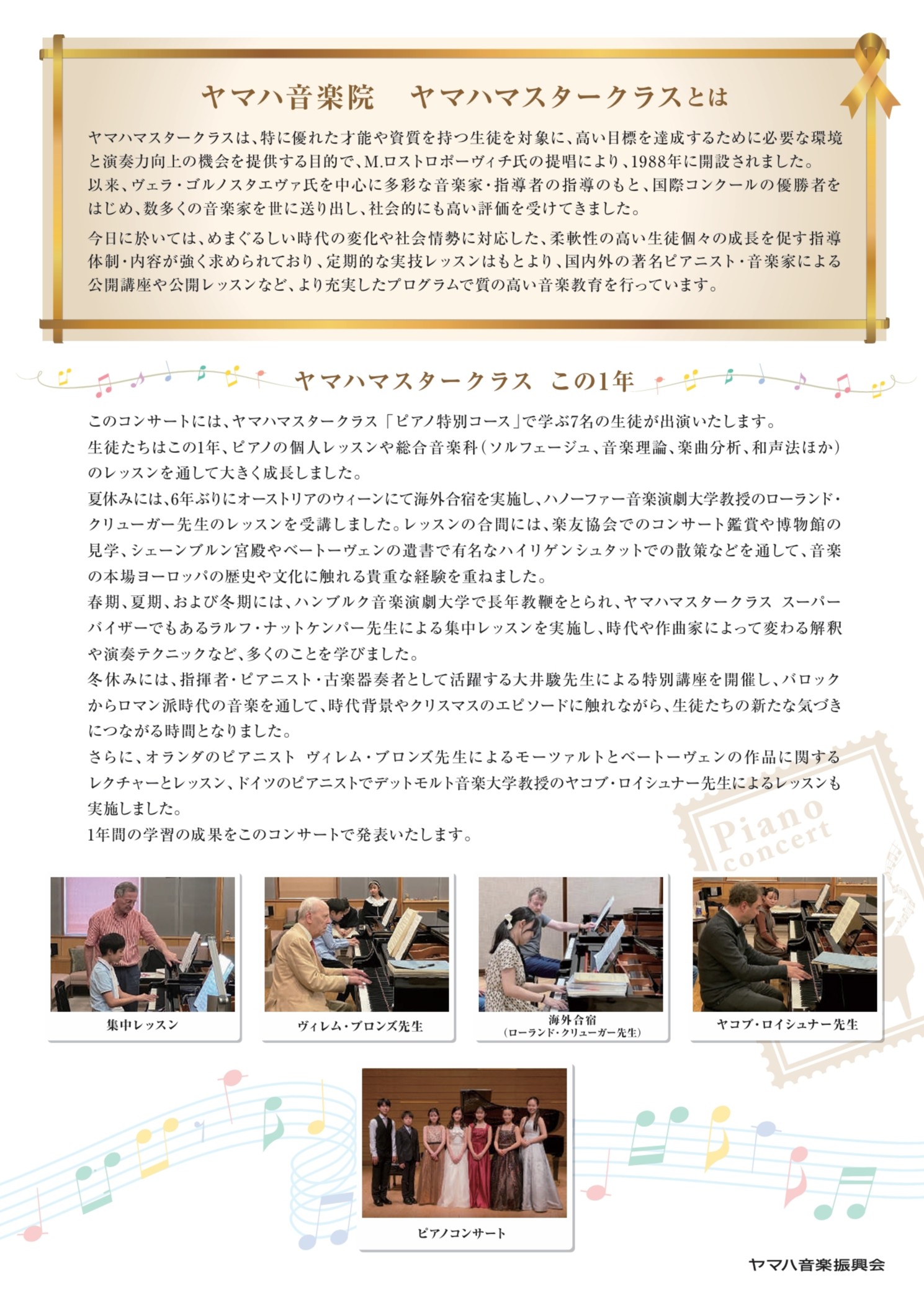 《ヤマハ音楽院 ヤマハマスタークラス ピアノ特別コース PIANO CONERT》にご出演されます。