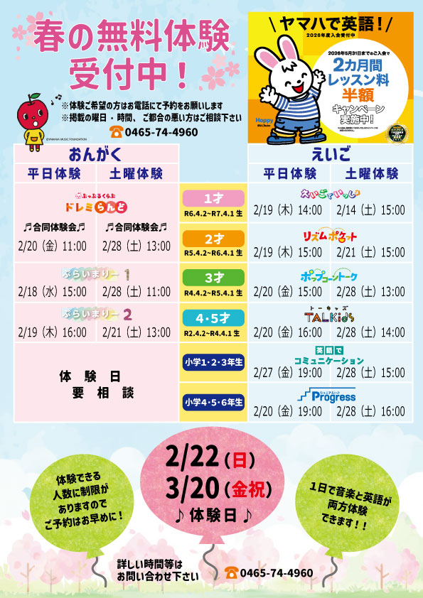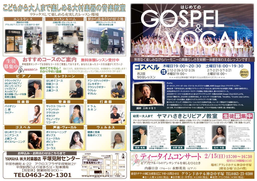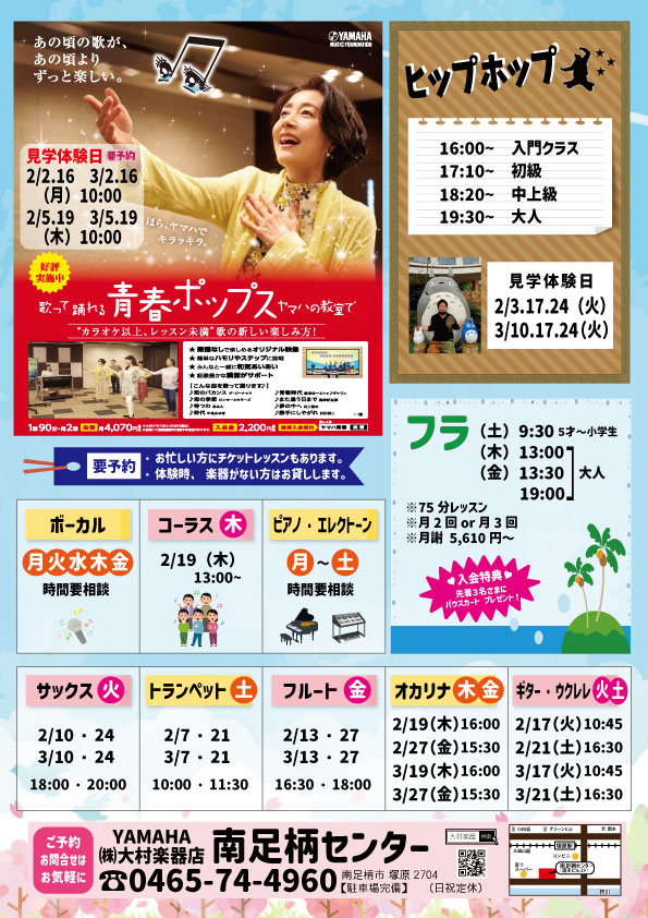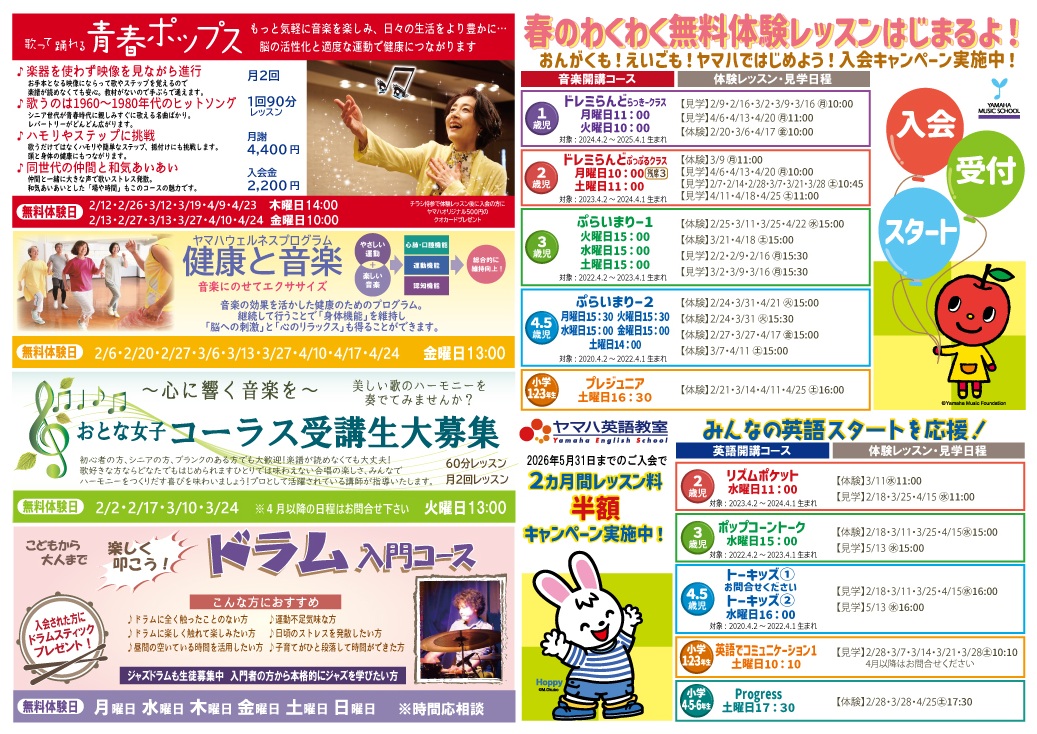 大村楽器店、各教室の最新号のチラシを掲載しております。