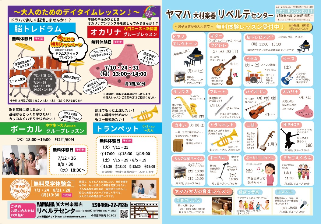 ヤマハ 大村楽器 「学ぶ心」「新しい音との出会い」「楽器のメンテナンス」あなたの豊かな音楽生活をかなえます。(小田原 秦野 平塚 足柄)
