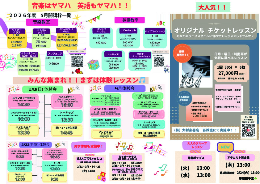 ヤマハ 大村楽器 「学ぶ心」「新しい音との出会い」「楽器のメンテナンス」あなたの豊かな音楽生活をかなえます。(小田原 秦野 平塚 足柄)