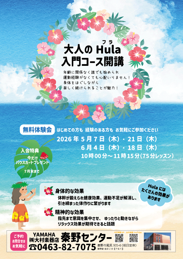 ヤマハ 大村楽器 「学ぶ心」「新しい音との出会い」「楽器のメンテナンス」あなたの豊かな音楽生活をかなえます。(小田原 秦野 平塚 足柄)