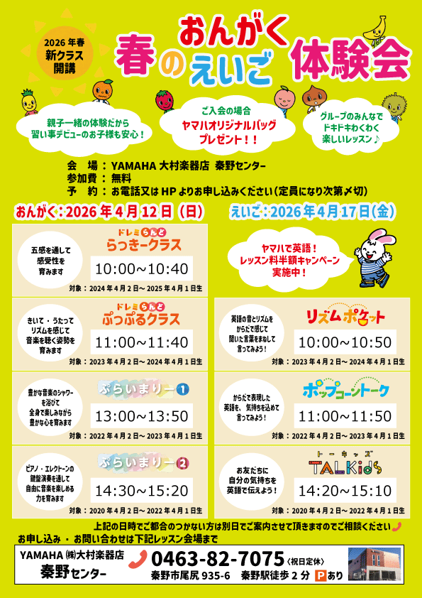 ヤマハ 大村楽器 「学ぶ心」「新しい音との出会い」「楽器のメンテナンス」あなたの豊かな音楽生活をかなえます。(小田原 秦野 平塚 足柄)