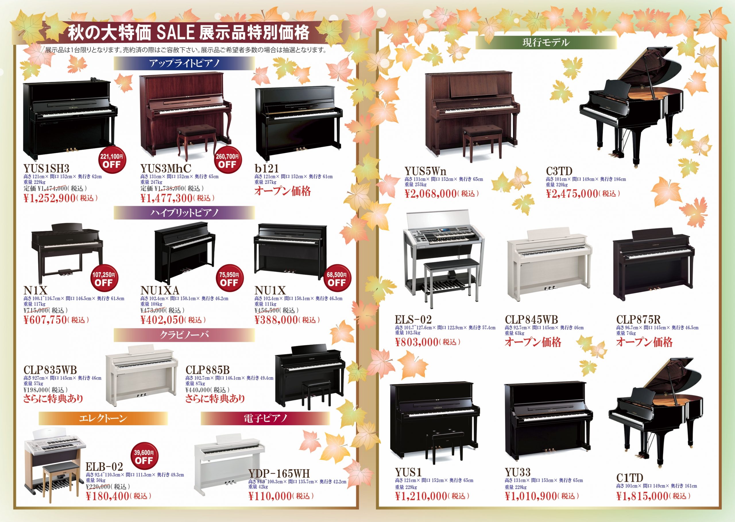 当日はグランドピアノからアップライトピアノまでの現行機種を展示致します。