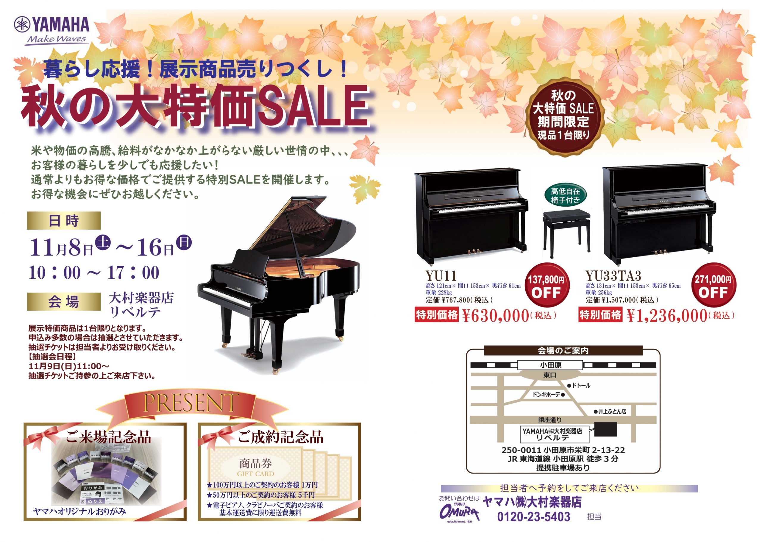 「秋の大特価セール」を11月8日(土)〜16(日)の期間、